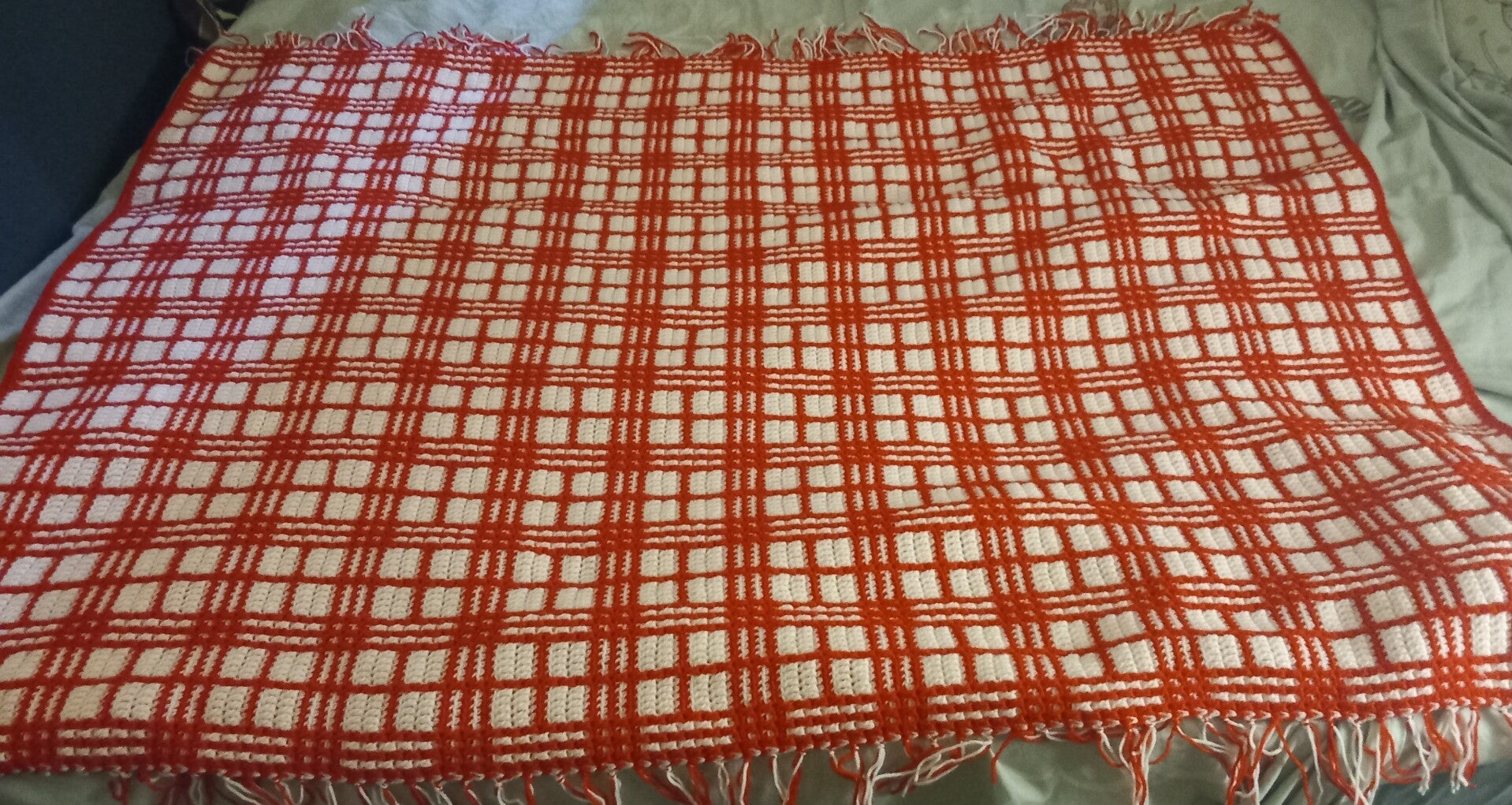 🧶 Couverture façon " Tartan " cocoon rouge & neige