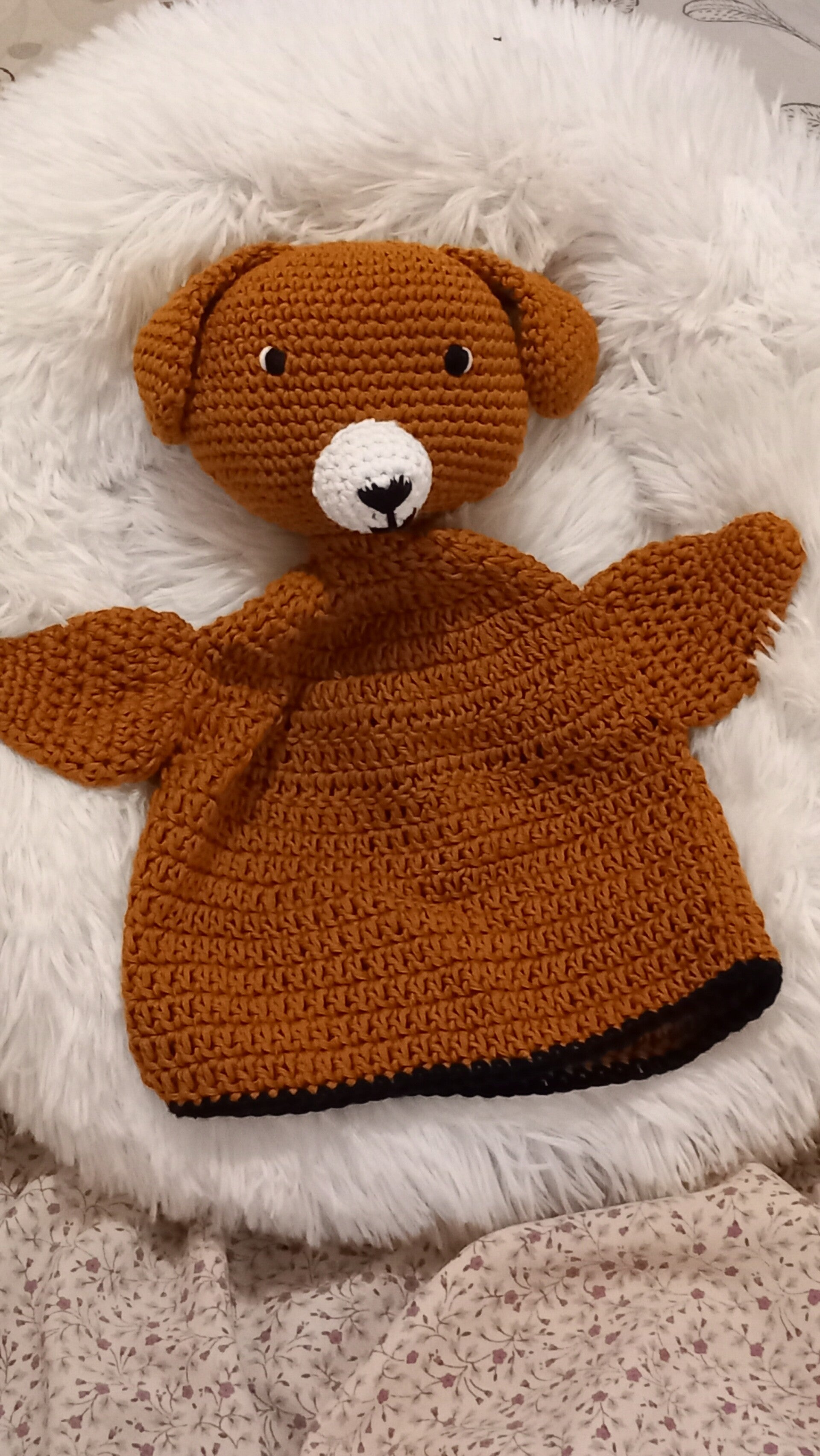 Un adorable doudou marionette fait main au crochet, créé avec amour pour offrir douceur, réconfort et sécurité à bébé.